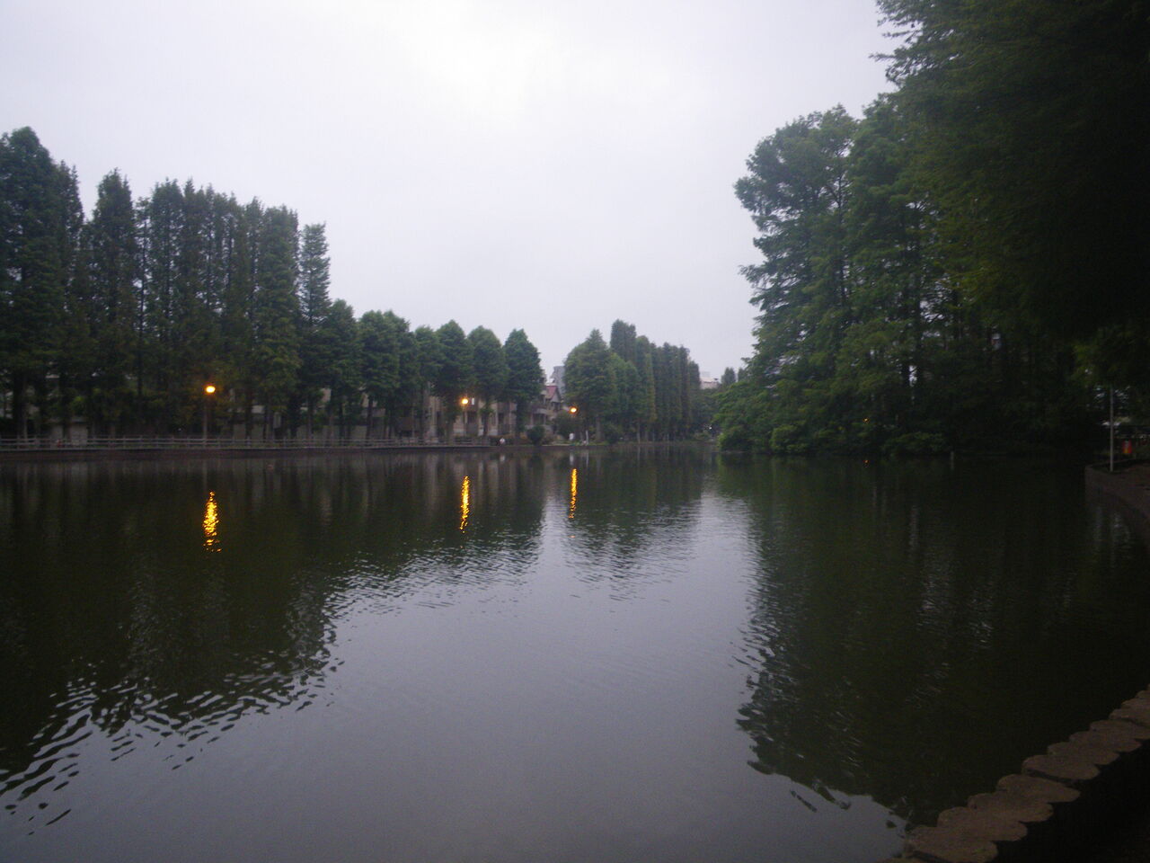 どことなく昭和を感じる池に着いた。 まだ薄暗いが、