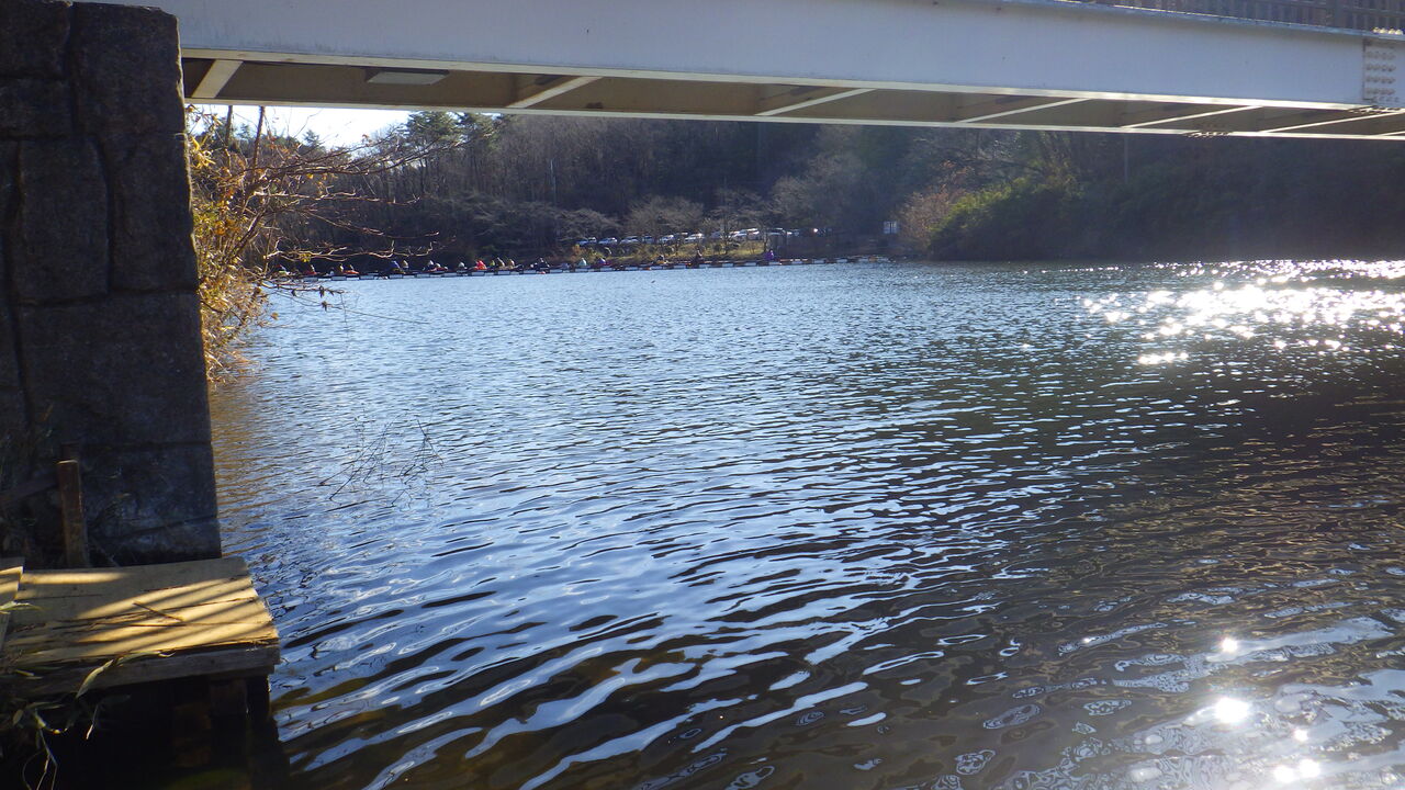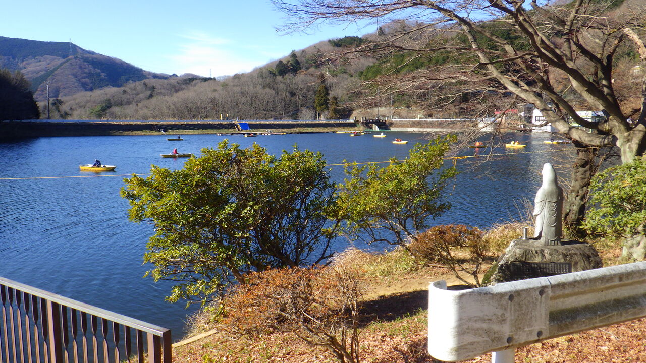 そしてついたのはこちら円良田湖。ワカサギの船がたくさんいます。