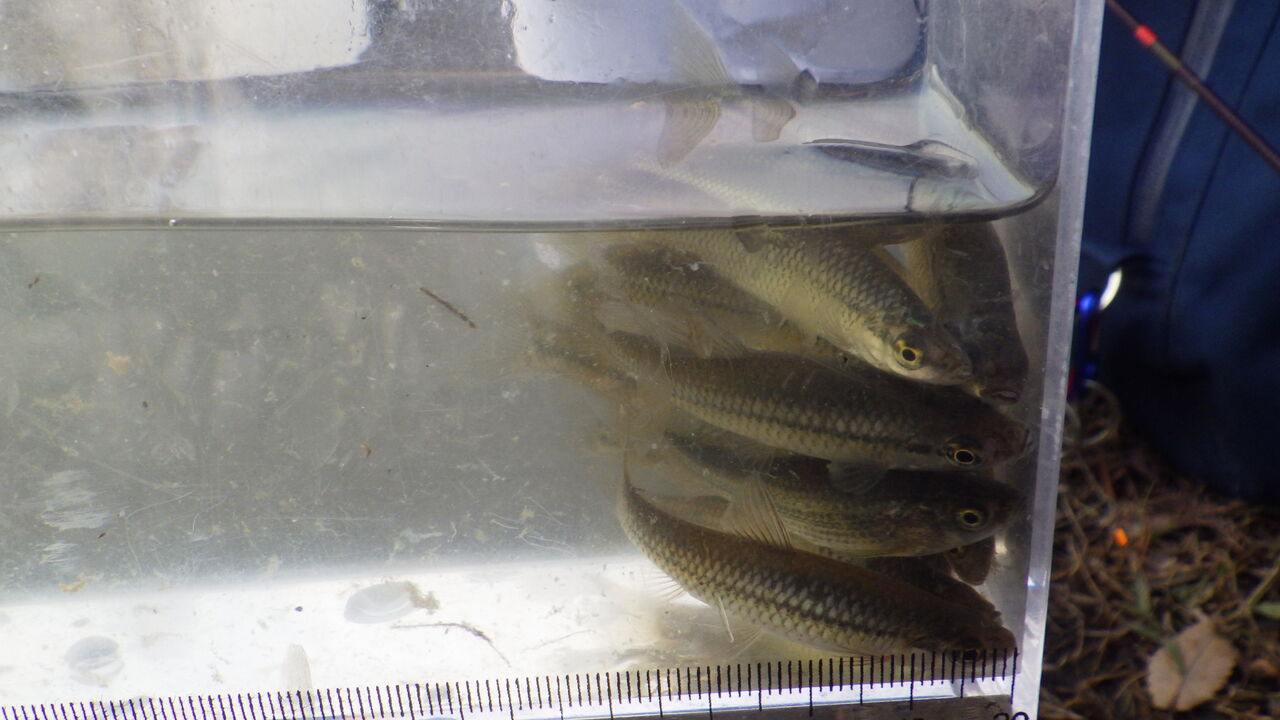 小物釣り 2023年01月07日 新春小物釣りヘラブナ釣りに行っている、屈巣沼で小物釣りをやってみました。ヘラ師はたくさん竿を出していましたが、釣れていないようでした。島の護岸すれすれでやってみます。エサはタナゴグルテン、竿は2.4尺ひなたです。棚は竿半分からやってみましたが、底付近のほうが反応が良かったです。竿ぎりぎり底が取れました。ペプシゼロでえさを作りました。流れがはやくて釣りづらかったですが、なんとか釣れました。1時間でこのくらい釣れればいいでしょう。結構楽しめました。モツゴとタモロコが釣れました。 < 前の記事次の記事 > コメント コメントフォーム 名前 コメント 記事の評価 リセット リセット 顔 星 情報を記憶 コメントを投稿する